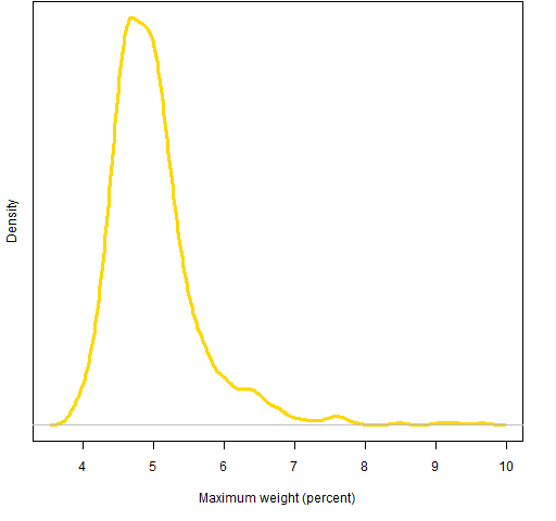 Figure 9: 2011 Q1 distribution of maximum weight when risk fractions are constrained.