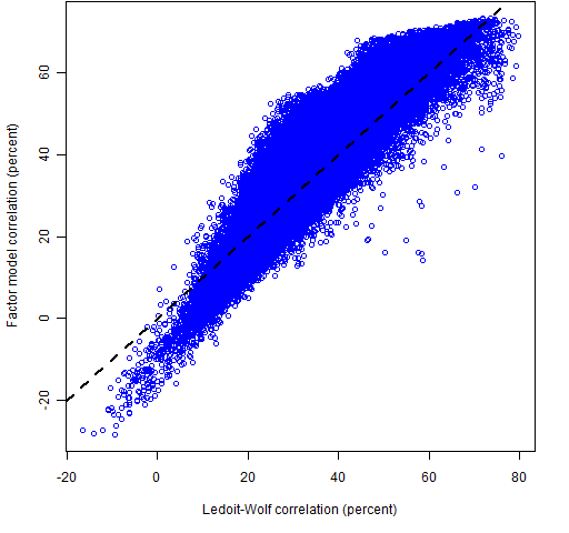 Figure 4: Comparison of Ledoit-Wolf and factor model correlations.