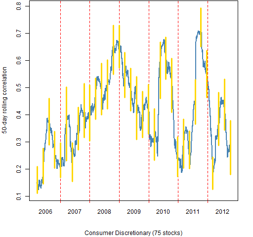 Figure 4: Consumer Discretionary 50-day rolling mean correlation.