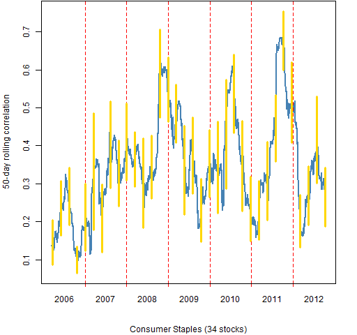 Figure 5: Consumer Staples 50-day rolling mean correlation.