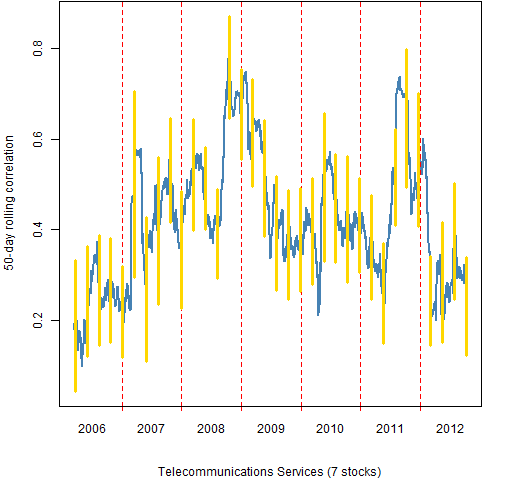 Figure 12: Telecommunications Services 50-day rolling mean correlation.