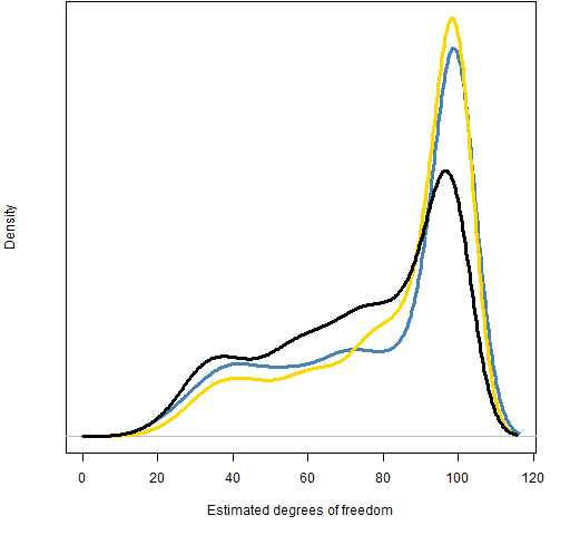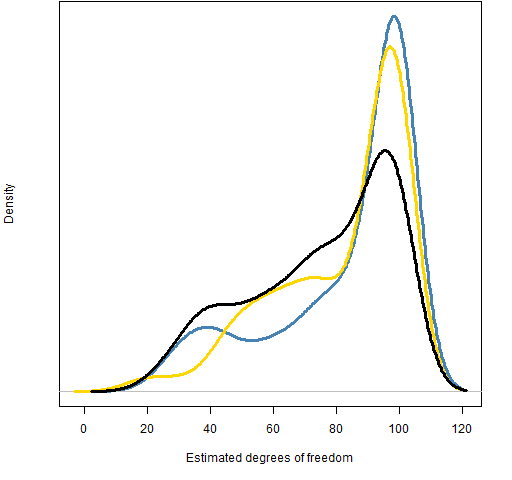 Figure 2 shows the distributions of the estimated degrees of freedom from the three fits.