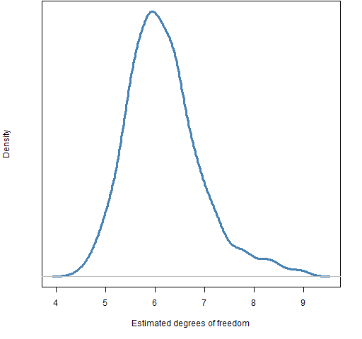 This means that we can’t assume that the estimate of the degrees of freedom is independent of the other parameters.