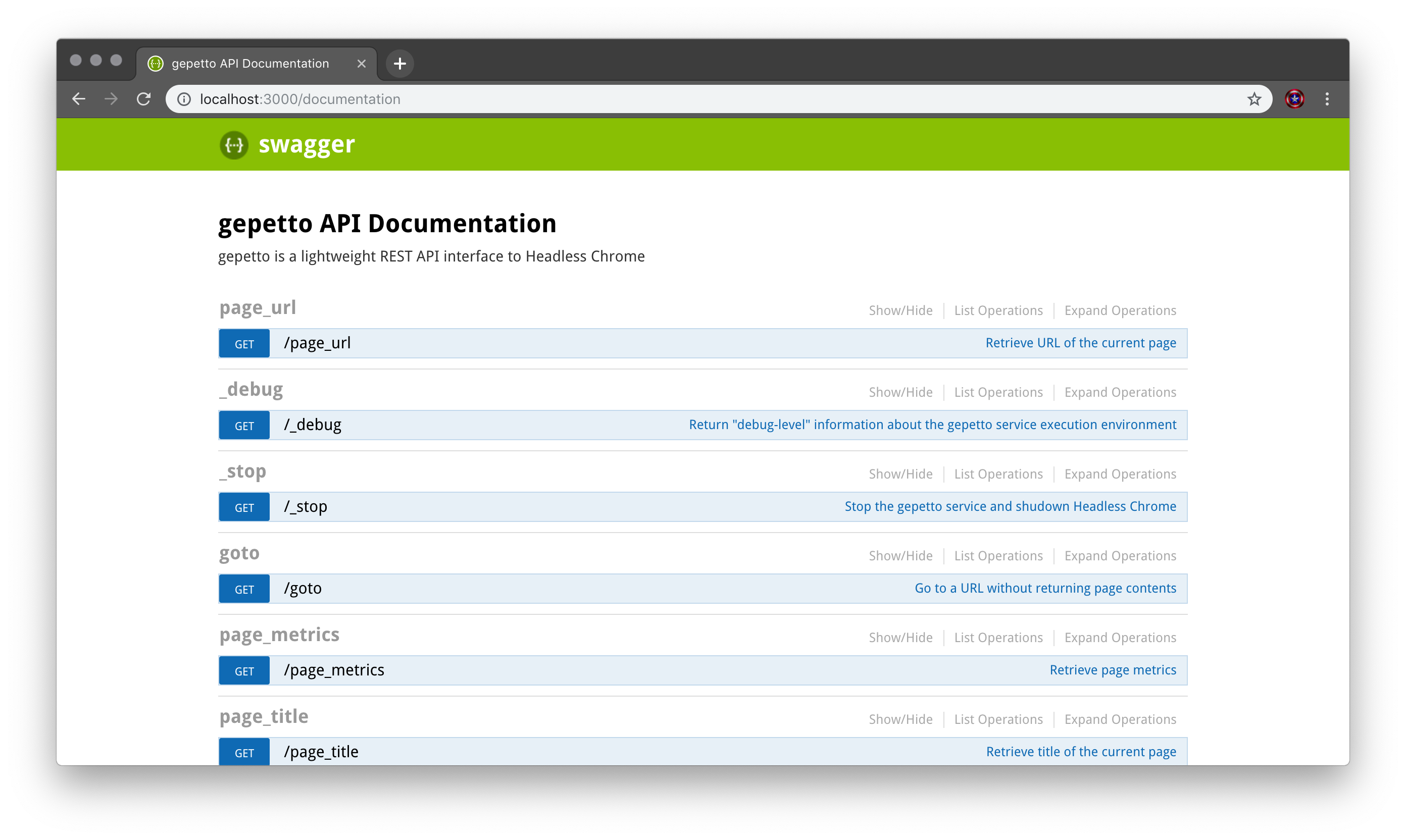 Now, Selenium works really well with Headless Chrome and there’s little point in trying to reinvent that wheel. Rather, I wanted a way to interact with Headless Chrome the way one can with [ScrapingHub’s Splash](https://github.com/scrapinghub/splash service. That is, a simple REST API. To that end, I’ve started a project called gepetto