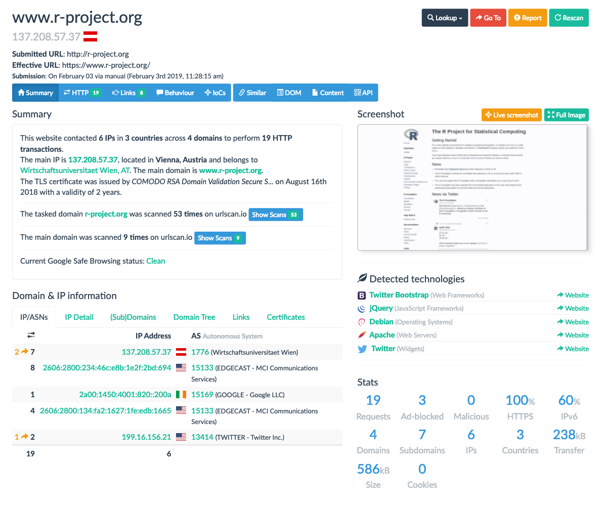 There is more data in that rproj object but we have enough to get more detailed results back. Note that site will return an error when you use urlscan_result() if it hasn’t finished the analysis yet.