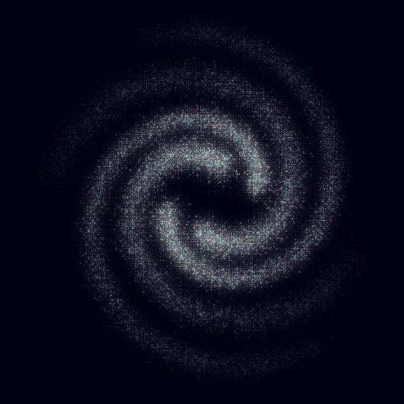 In fact, we can further randomize other attributes of the stars as well, i.e., either via sampling values from a predefined set (e.g., random sizes for the stars) or letting it correlate with some feature (e.g., opacity being inversely proportional to the radius from the center). Adding multiple layers of halo effect also helps in terms of introducing the illusion of a vibrant galaxy.