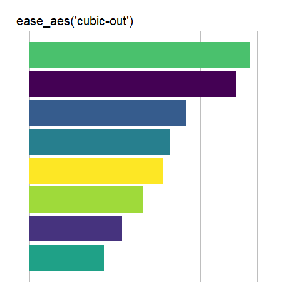 Here (6) is a nice illustration of the various easing options presented as animated paths.Here (7) and here (8) are articles presenting various animated plots using ease_aes().