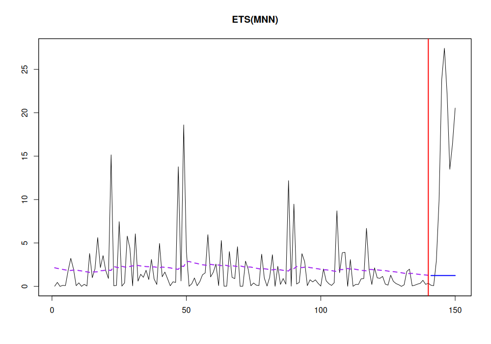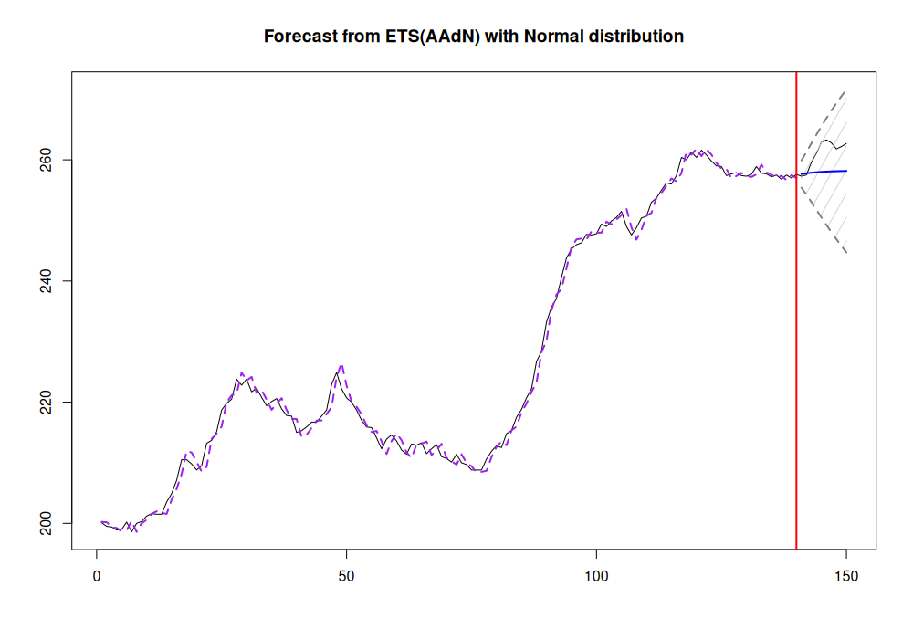 adamETSBJ <- adam(BJsales, h=10, holdout=TRUE) summary(adamETSBJ, level=0.99)