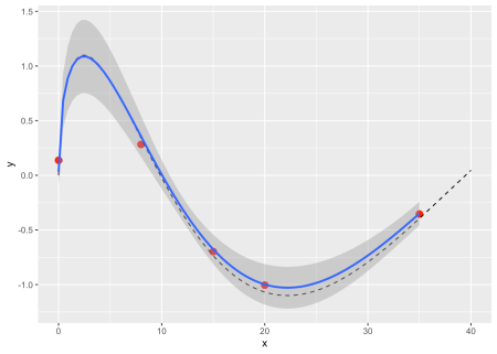 So we have this mystery function generator! It can propose possible functions, and we can see how well they fit the data. We can also predict values for these functions at points that we don’t have observations for.